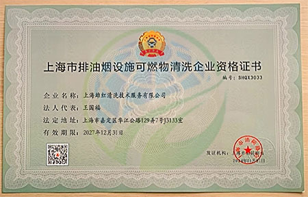 上海雄紅清洗技術服務有限公司是一家專業從事上海油煙管道清洗公司,擁有“上海市排油煙設施可燃物清洗企業資格證書”、“上海市市容環境衛生行業協會會員單位”、“上崗證”等多項專業證書。